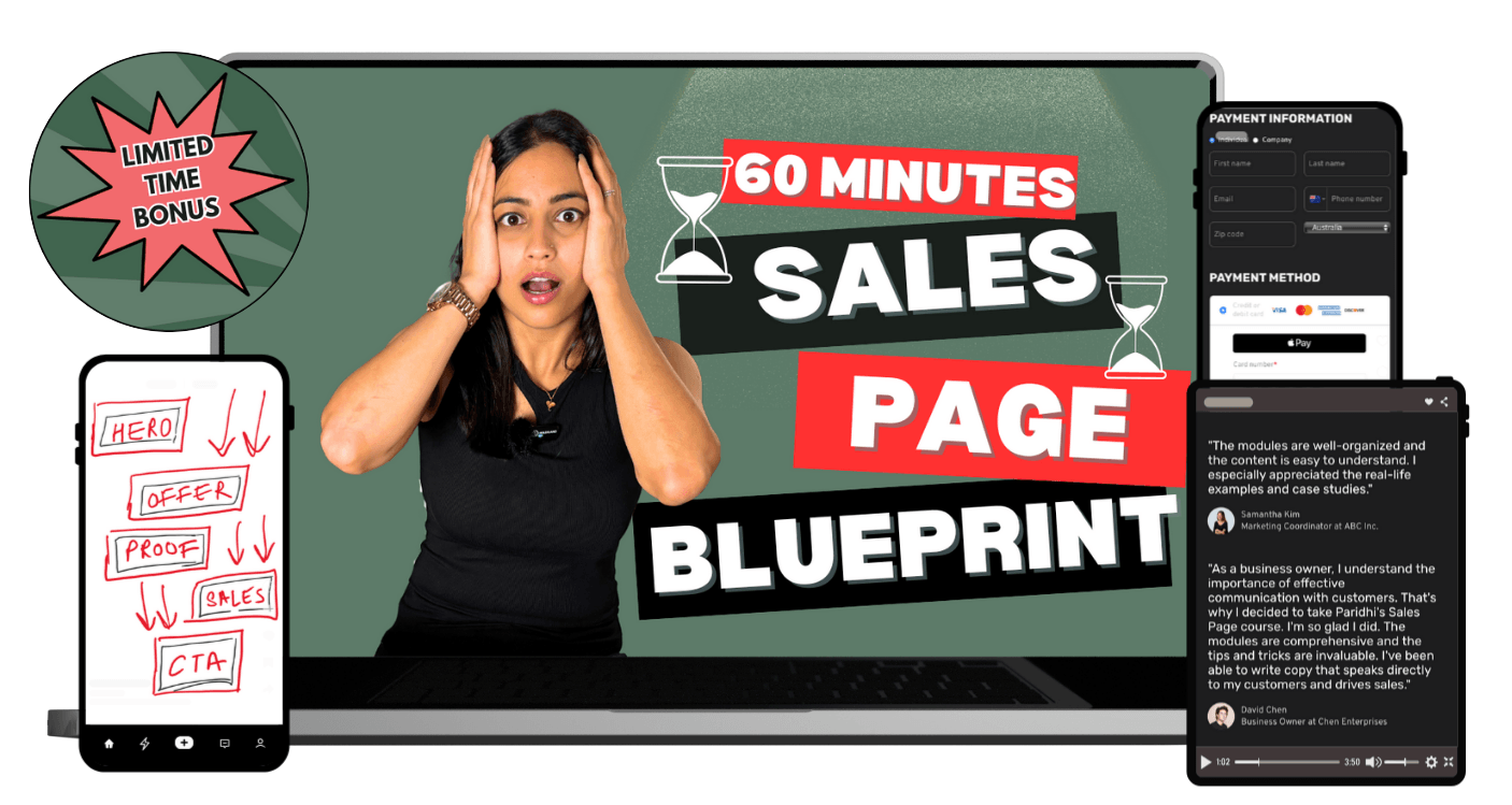 Learn to write a high-converting sales page in 60 minutes - even at the initial stage of product planning. Get my sales blueprints, bonus scripts, and launch with confidence.